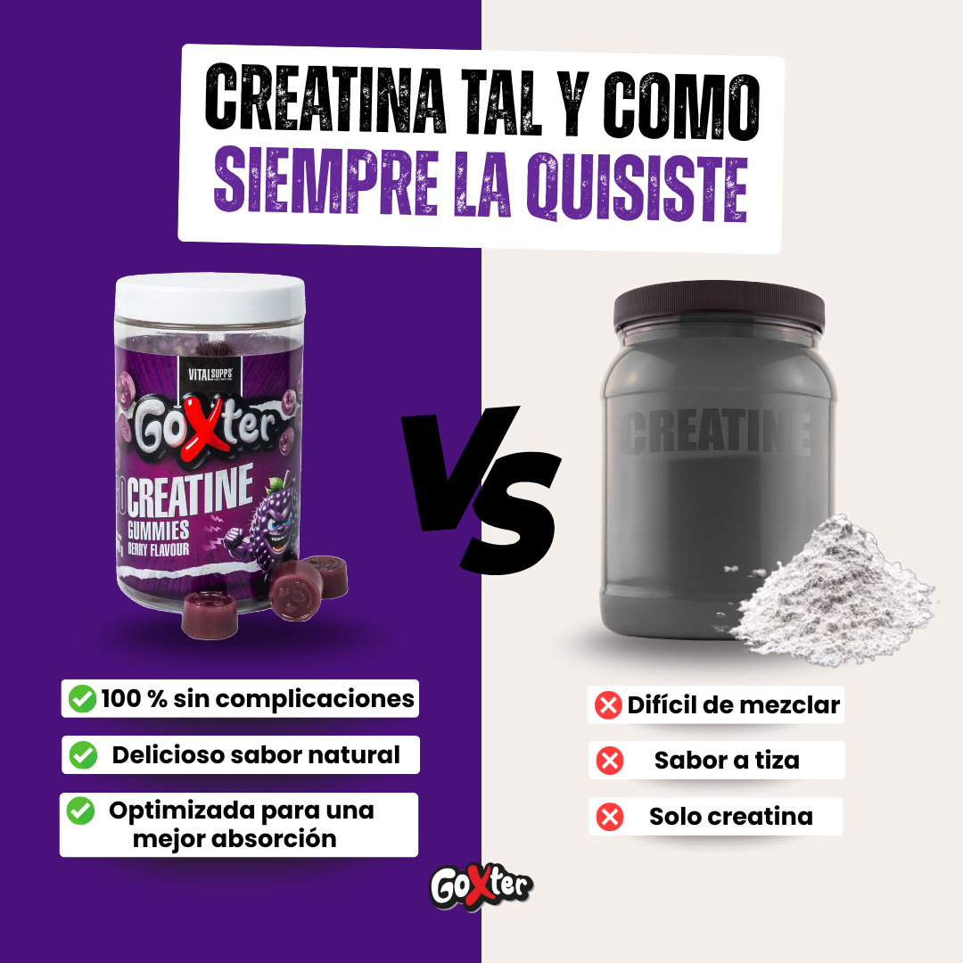 Cada gominola contiene 1.5g de creatina monohidratada. Es el suplemento más estudiado y contrastado para mejorar la fuerza, resistencia y recuperación muscular.
